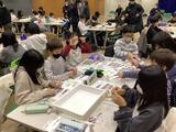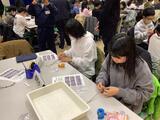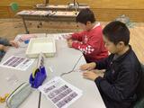 ほっけの話の後は休憩を挟んでミサンガづくりに取り組みました。漁業士会主催のミサンガづくりですから、素材は毛糸のほかに、漁網に使われる強固な合成繊維が入っています。願掛けのミサンガは切れる必要がありますが、今回製作するミサンガは強い繊維が含まれるので、アクセサリー感覚で作ってもらえればという説明がありました。三つ編みに慣れている子はあっという間に編み上げてしまいましたが、慣れない子は悪戦苦闘していました。それでも一人あたり2つのミサンガを仕上げることができたようです。
