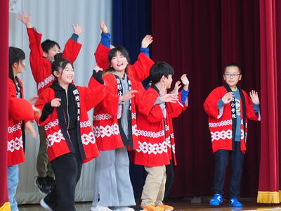 4年生は「何でも引き受け株式会社」風のオープニング 6年生に挑戦