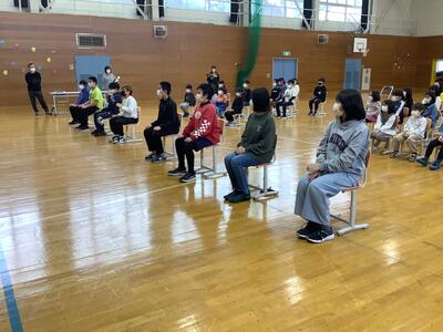 数年前から節分に、北見冨士神社様から子どもたちや教職員に豆をいただいています。今年はただ豆をいただくだけではなく、宮司様から節分についての説明をしていただいた後、豆まきイベントを開催していただきました。1・2年生を中心に声をかけましたが、多目的ホールには他の学年も含め、たくさんの子どもたちが集まりました。