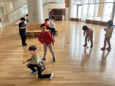 最近ちょっとずつはやっているのは独楽回し。一番上手なのは昭和生まれの子です。