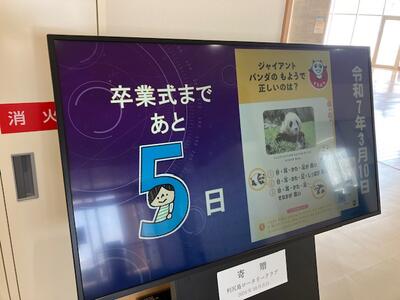 玄関にあるデジタルサイネージで卒業式までのカウントダウンが先週から始まっています。