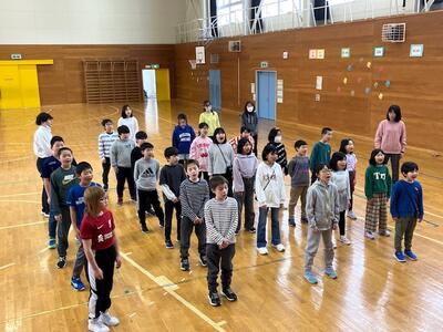 4・5年生の保体委員です。6年生の委員もいたのですが、もうすでに一線を退いて見守る立場になっています。次期リーダー・サブリーダーが競技説明などしてくれました。