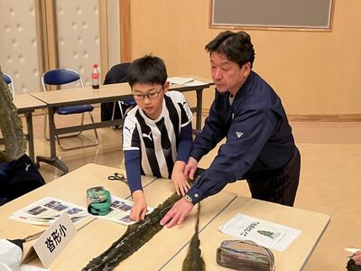 なぜなら「こんぶの話」として島内の3・4年生が学習するからです。今日の講師は沓形小学校の保護者であり、漁業士会ノースフラッガーズ代表でもある小坂さんでした。
