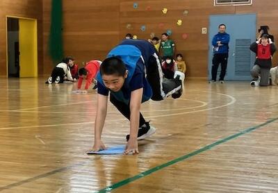 4年生といえばダンス!ダンスを使ったイントロあて?やまちがい探し、無音の踊りだけで何の曲か当てるクイズを発表してくれました。最後は6年生一人ひとりにメッセージカードを贈呈していました。