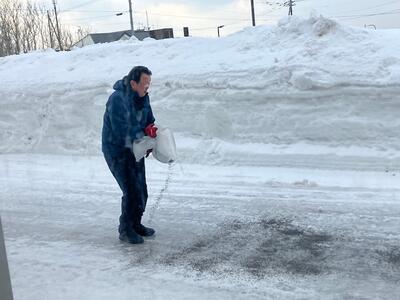 学校近くの利尻町除雪センターの方から転倒防止の砂をいただきました。