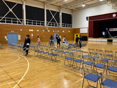 今日は放課後に全職員で飾り付けや会場の準備をしました。