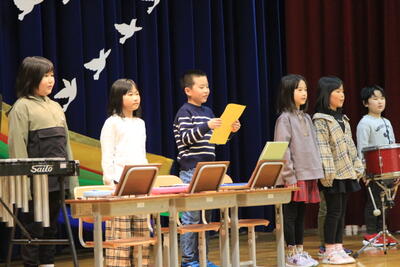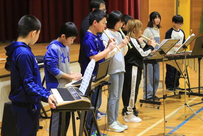 2024年末から練習に取り組んで、休み時間も練習した曲です。かなり難しかっただけあって見事な演奏でした。このチームワークで来年度の沓形小学校を引っ張ってくれることでしょう。