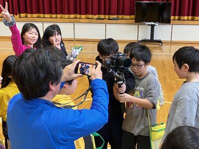 我が校(旧新湊小学校)出身の時雨音羽さんにちなんで、子ども達が校歌を歌っている風景を撮影しました。