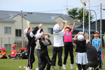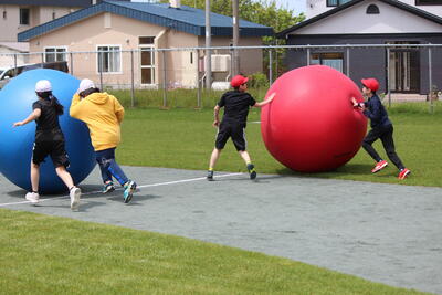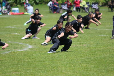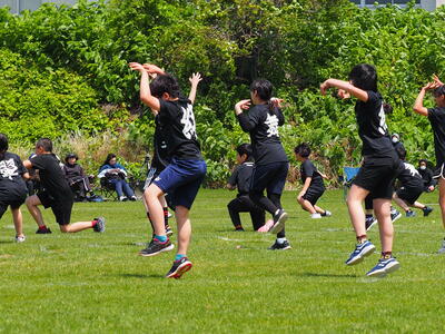 全体練習では、「大玉リレー」「玉入れ」「リレー」「ソーラン節・沓小ソーラン」など、全校で動きの確認をする必要がある種目に取り組んでいます。
