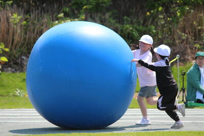 大玉リレーの入退場練習 この日は雨上がりだったので大玉を使えず
