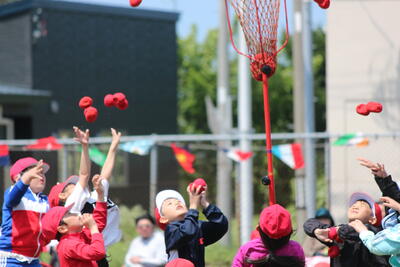 低学年の玉入れは制限時間内に入れた玉の数で勝負