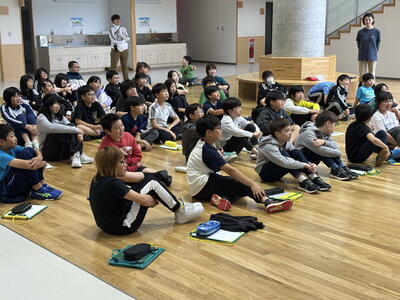 よい姿勢でお話を聞く1年生 質問にもしっかり答えました