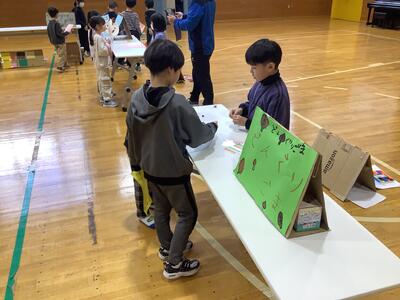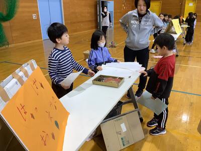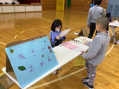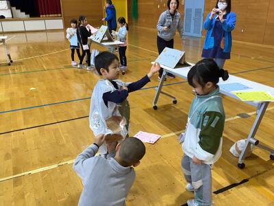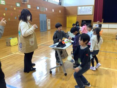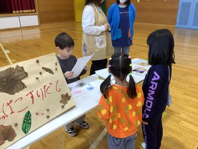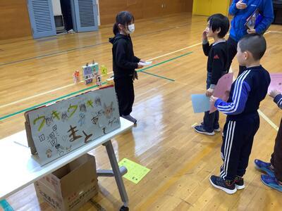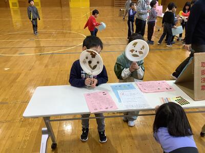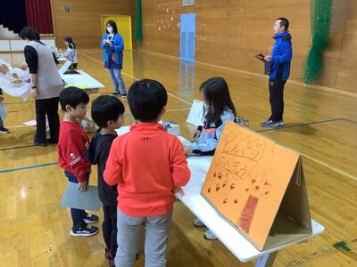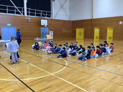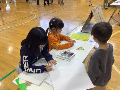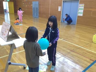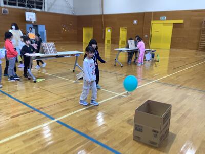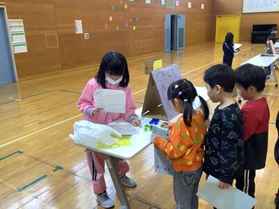 さらに沓形保育所のめろん組さんを招待して、自分たちが考えたおもちゃや遊びで楽しんでもらいました。