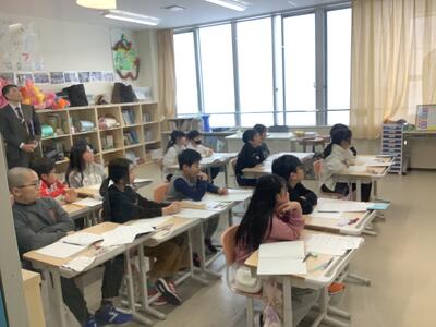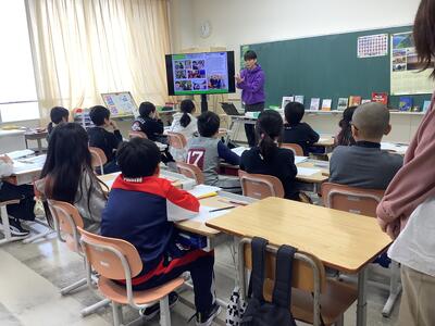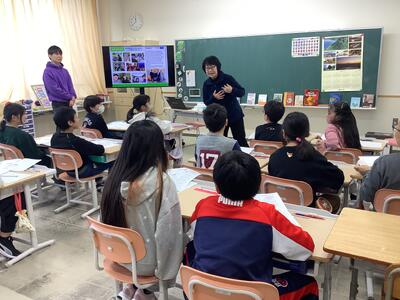 4年生は社会科「国際交流に取り組むまち」で、利尻高校の生徒を対象とした短期留学制度「マクドナルド留学」について、より学びを深めることにしました。利尻高校に連絡をとったところ快諾いただき、校長先生や留学に携わった経験のある先生方にゲストティーチャーとして来校いただきました。留学に関する資料をもとに、子どもたちにわかりやすく、知的好奇心が高まる工夫に満ちた説明をいただきました。参加型の4年生は興味深そうな表情で熱心にで説明を聞いていました。将来、この中から短期留学を経験する生徒が出るかもしれませんね。