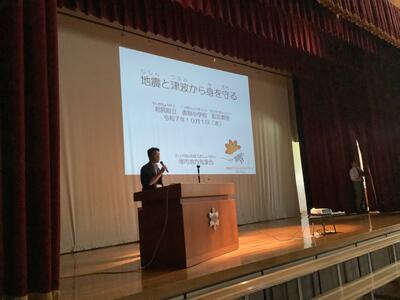 稚内地方気象台の方から、地震のしくみや恐ろしさ、身を守る方法を学びました。画像や動画をもとに、わかりやすく説明していただきました。低学年の子も興味を失わず、最後までしっかり聞くことができました。