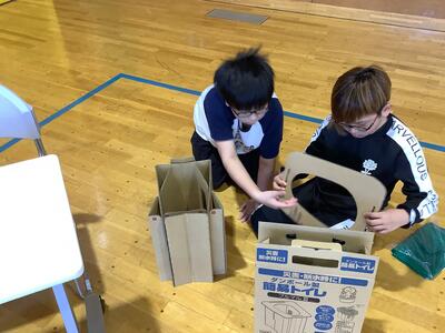 簡易トイレづくりはちょっと難しいので高学年中心で