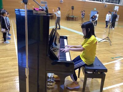 ピアノ伴奏は5年生児童が担当 見事な腕前